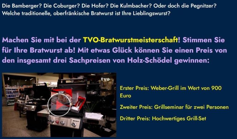 Die Zuschauer von TVO hatten die Möglichkeit für Ihre Lieblingsbratwurst per Telefon abzustimmen. Unsere Kulmbacher Bratwurst belegte mit nur 0,8 Punkten auf den Sieger aus Coburg, Platz 2 und somit ein sagenhaftes Ergebnis, auf das wir sehr stolz sind.